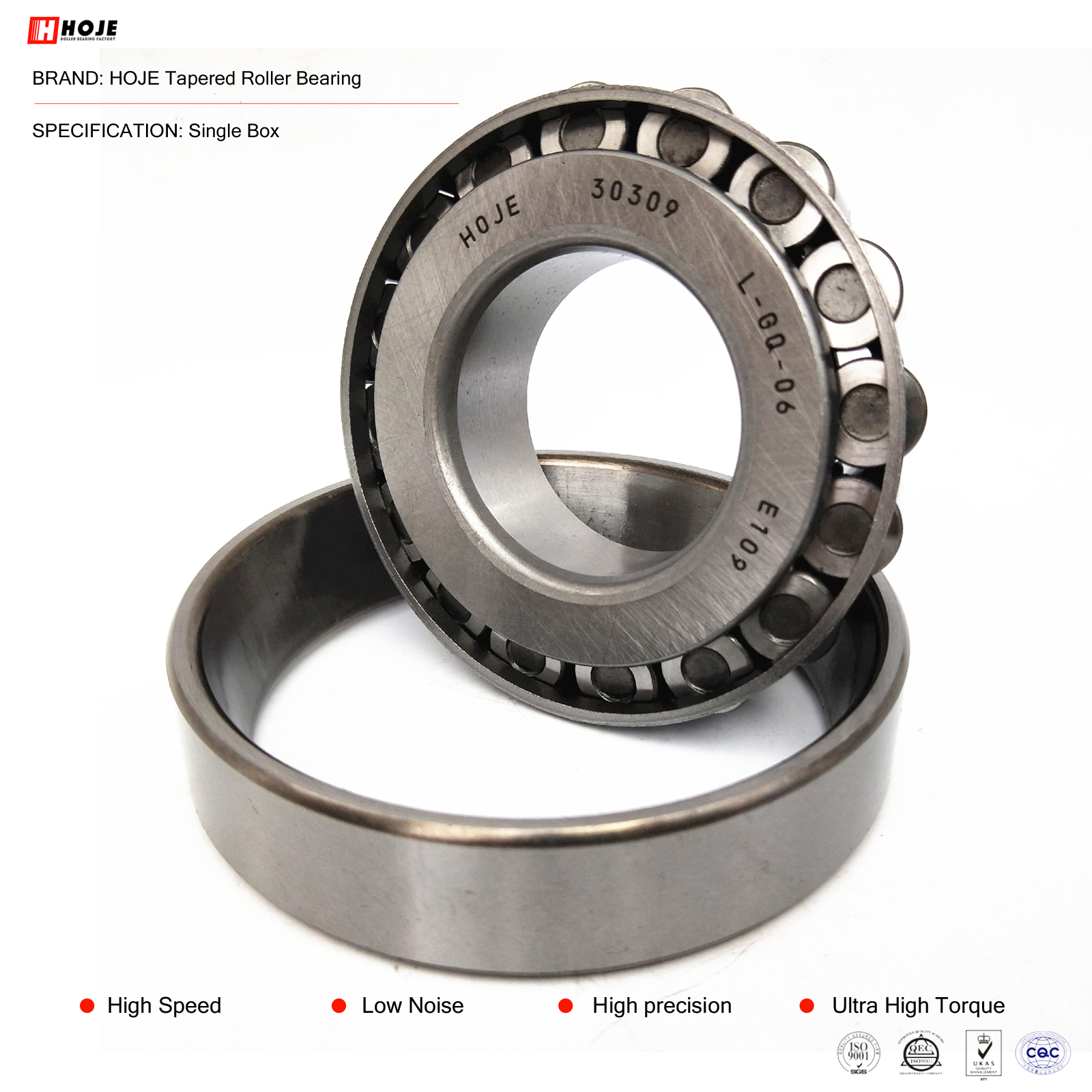 - HOJE precision tapered roller bearings are designed to reach V1 grade noise level, which makes the quieter running of automobile engine and gearbox.